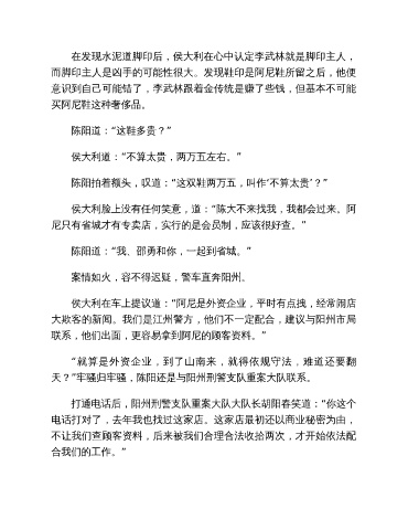 在发现水泥道脚印后,侯大利在心中认定李武林就是脚印主人,