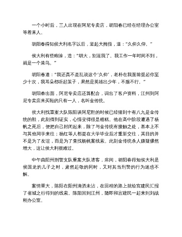 侯国龙的儿子之时,肃然起敬的同时,又对其当刑警的行为迷惑不