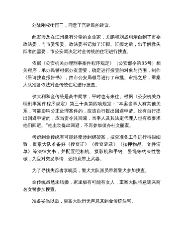 踪者的需要,市公安局决定对金传统的住宅进行搜查。