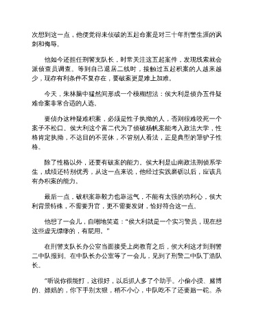 今天,朱林脑中猛然间形成一个模糊想法:侯大利是侦办五件疑