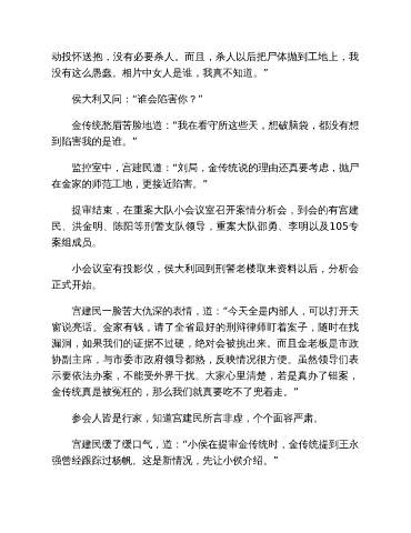 宫建民缓了缓口气,道:“小侯在提审金传统时,金传统提到王永