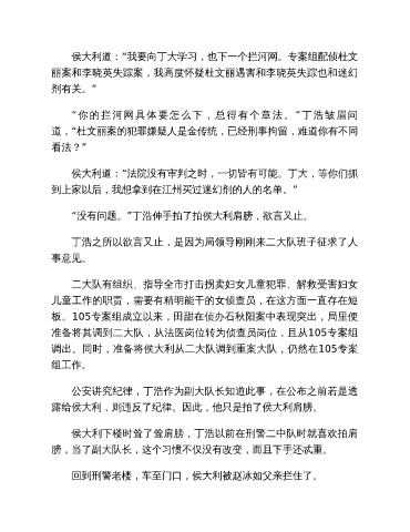 侯大利道:“我要向丁大学习,也下一个拦河网。专案组配侦杜文