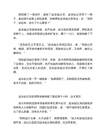 侯大利和田甜原本准备再到章红家中走访,赵冰如父亲的惨状弄