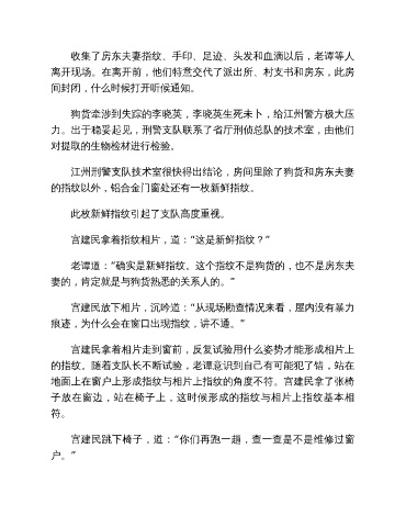 的指纹。随着支队长不断试验,老谭意识到自己有可能犯了错,站在