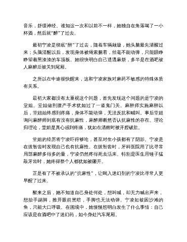 睁望着黑漆漆的车顶板。她很快明白自己遭遇麻烦,多半是在酒吧被