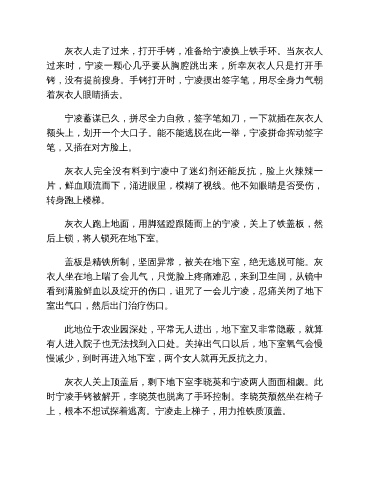 宁凌蓄谋已久,拼尽全力自救,签字笔如刀,一下就插在灰衣人