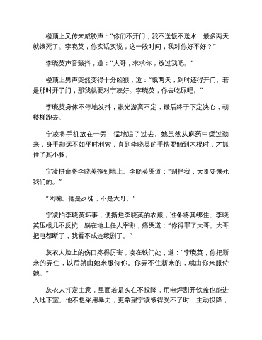 入地下室。他不想采用暴力,更希望宁凌饿得受不了时,主动投降,