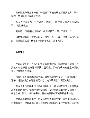得知警察离开,灰衣人松了一口气,放下手机,继续让马医生治