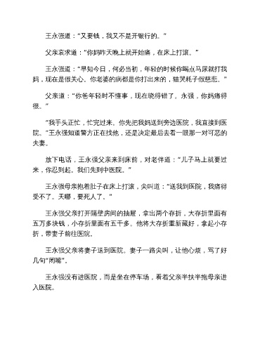 王永强父亲将妻子送到医院。妻子一路尖叫,让他心烦,骂了好