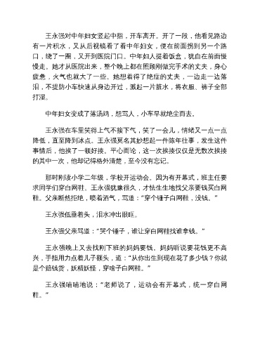 求同学们穿白网鞋。王永强犹豫很久,才怯生生地找父亲要钱买白网