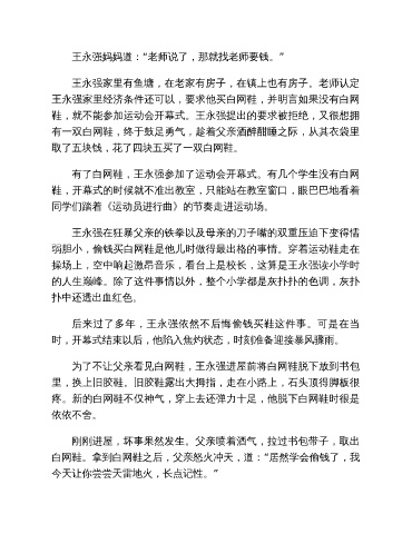 为了不让父亲看见白网鞋,王永强进屋前将白网鞋脱下放到书包