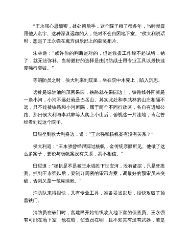 消防员在破门时,宫建民开始组织攻入地下室的侦查员。王永强
