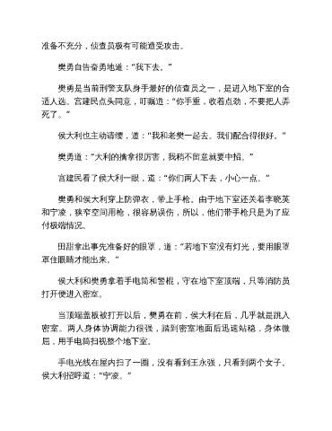 樊勇和侯大利穿上防弹衣,带上手枪。由于地下室还关着李晓英