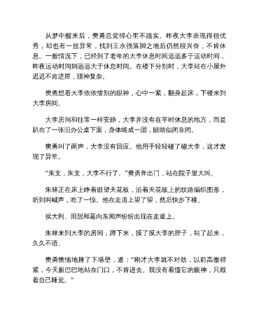从梦中醒来后,樊勇总觉得心里不踏实。昨夜大李表现得很优