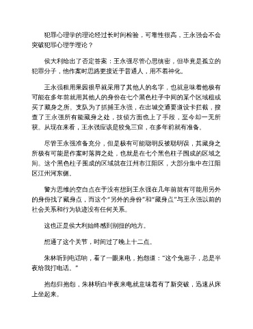 侯大利给出了否定答案:王永强尽管心思缜密,但毕竟是孤立的