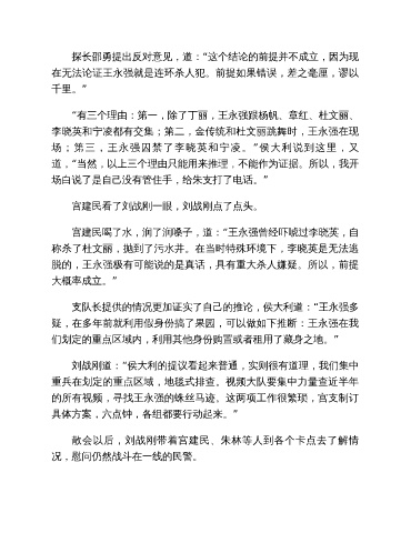 的所有视频,寻找王永强的蛛丝马迹。这两项工作很繁琐,宫支制订