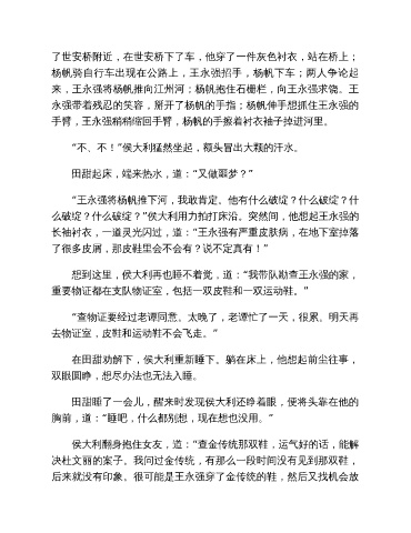 么破绽?什么破绽?”侯大利用力拍打床沿。突然间,他想起王永强的
