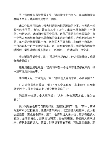 丢了货的服务员被骂昏了头,讲起案情夹七夹八。李大嘴和侯大