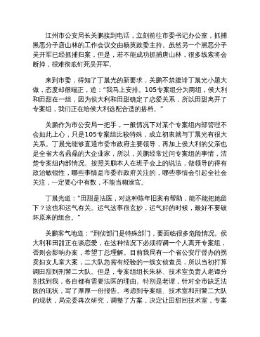 江州市公安局长关鹏接到电话,立刻前往市委书记办公室,抓捕