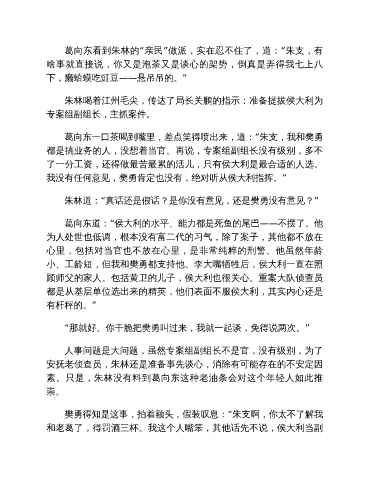 朱林喝着江州毛尖,传达了局长关鹏的指示:准备提拔侯大利为