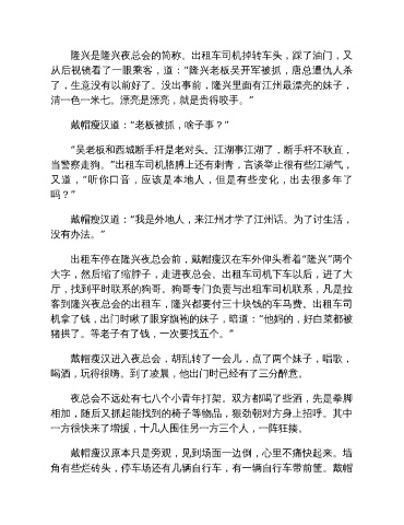 隆兴是隆兴夜总会的简称。出租车司机掉转车头,踩了油门,又