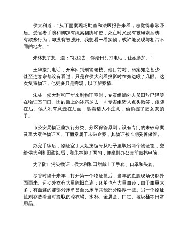 侯大利道:“从丁丽案现场勘查和法医报告来看,总觉得非常矛
