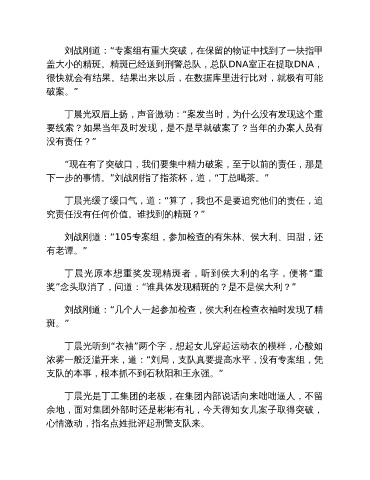 刘战刚道:“专案组有重大突破,在保留的物证中找到了一块指甲