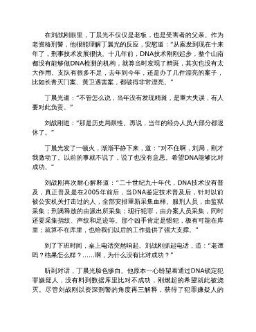 听到对话,丁晨光脸色惨白。他原本一心盼望着通过DNA锁定犯
