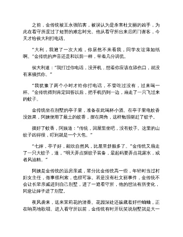 妇女主任,做事很利索,也很可靠。若是没有杜文丽事件,金传统不