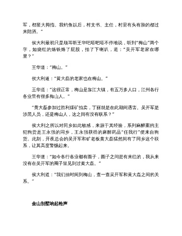 侯大利最初只是顺耳听王华吧嗒吧嗒不停地说,听到“梅山”两个