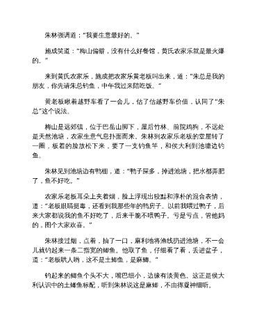 来到黄氏农家乐,施成把农家乐黄老板叫出来,道:“朱总是我的