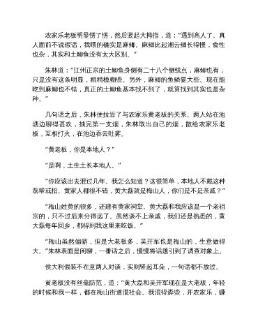 几句话之后,朱林便拉近了与农家乐黄老板的关系。两人站在池