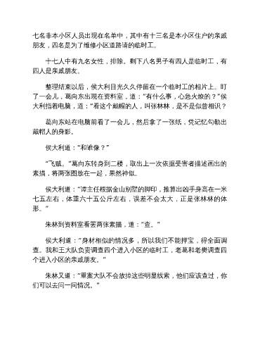 查。我和王大队负责调查四个进入小区的临时工,老葛和老樊调查四