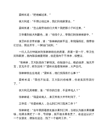 梁科长道:“我也不知道。王大队问你啥事,你老实回答就行