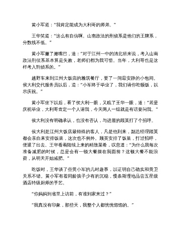 吃饭时,王华谈了些黄小军的儿时趣事,以证明自己确实和黄卫