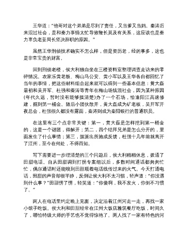 碎情况。农家乐黄老板、梅山马公安、黄小军以及王华各自都回忆了