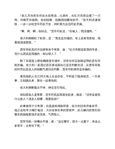 狗,停都不停就跑。你别抵赖,抵赖我扭断你的手。”侯大利语速很