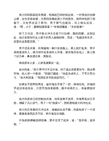 侯大利和田甜还未靠拢,电梯处已经吵闹起来。一对情侣沿扶梯