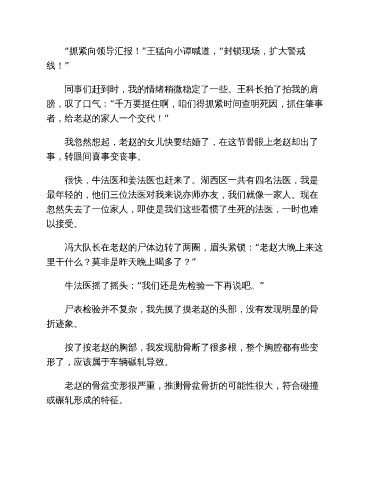 尸表检验并不复杂,我先摸了摸老赵的头部,没有发现明显的骨