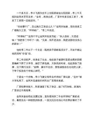 金阿木躲在暗处没露过脸,直到看到李二牛在环球砖厂索赔成