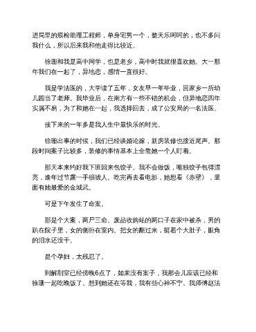 我是学法医的,大学读了五年,女友早一年毕业,回家乡一所幼