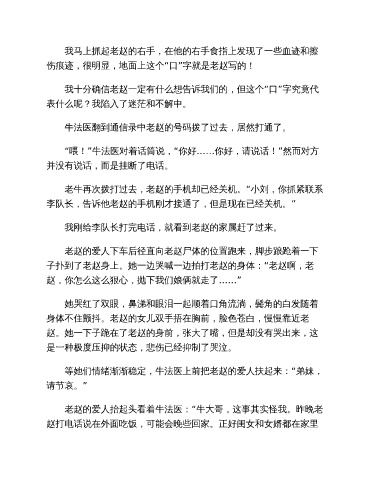老赵的爱人抬起头看着牛法医:“牛大哥,这事其实怪我。昨晚老