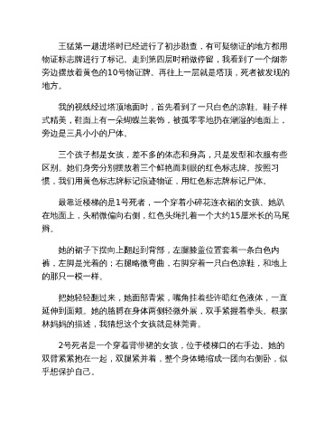 最靠近楼梯的是1号死者,一个穿着小碎花连衣裙的女孩。她趴