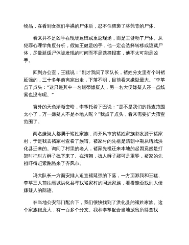 回到办公室,王猛说:“刚才我问了李队长,褚姓分支里有个叫褚