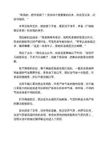 李筝没有再坚持,默默摘下手套,重新洗干净手,拿着《尸体检