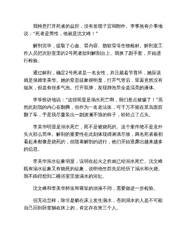 失火那么简单。解剖的重要性在此刻体现得淋漓尽致,两名死者最初