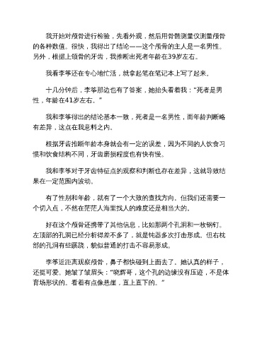 我和李筝得出的结论基本一致,死者是一名男性,而年龄判断略