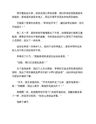 我嘿嘿一笑,把那颗带有字母“C”的假牙递给他。他翻来翻去看