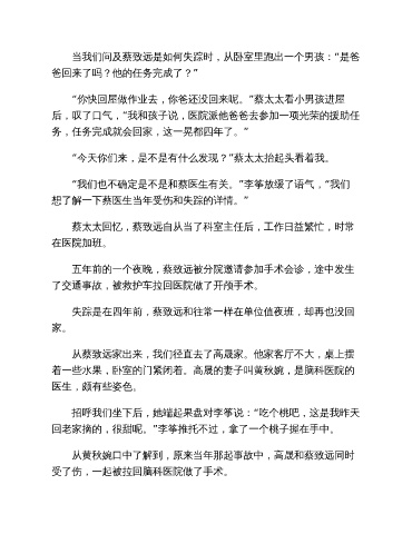 蔡太太回忆,蔡致远自从当了科室主任后,工作日益繁忙,时常