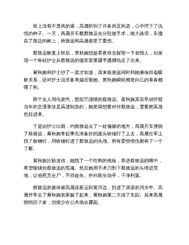 希望能镇住蔡致远的冤魂。然后她用手术刀割下蔡致远的头埋进荒